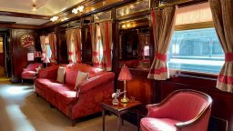 Има и четири вагона-салона от 1928 и 1930 г., които блестят с червена кадифена тапицерия и меко позлатено осветление.