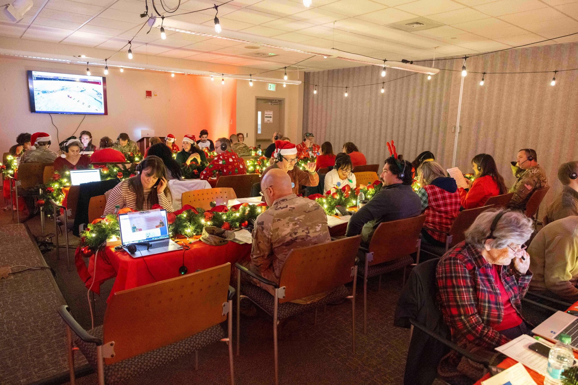 Миналата година около 380 000 обаждания са получени в хангар, украсен с коледни декорации, военновъздушната база "Питърсън" в щата Колорадо, където е централата на НОРАД.