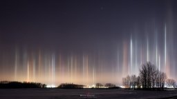 Светлинните стълбове са рядък оптичен феномен, който се получава, когато светлината се отразява от малки шестоъгълни ледени кристали. Те, подобно на миниатюрни огледала, улавят и разделят светлината, като създават светлинни структури, насочени нагоре или надолу. Източникът на светлина може да бъде както Луната, така и изкуствени източници като улични лампи, фарове на автомобили или градски светлини.