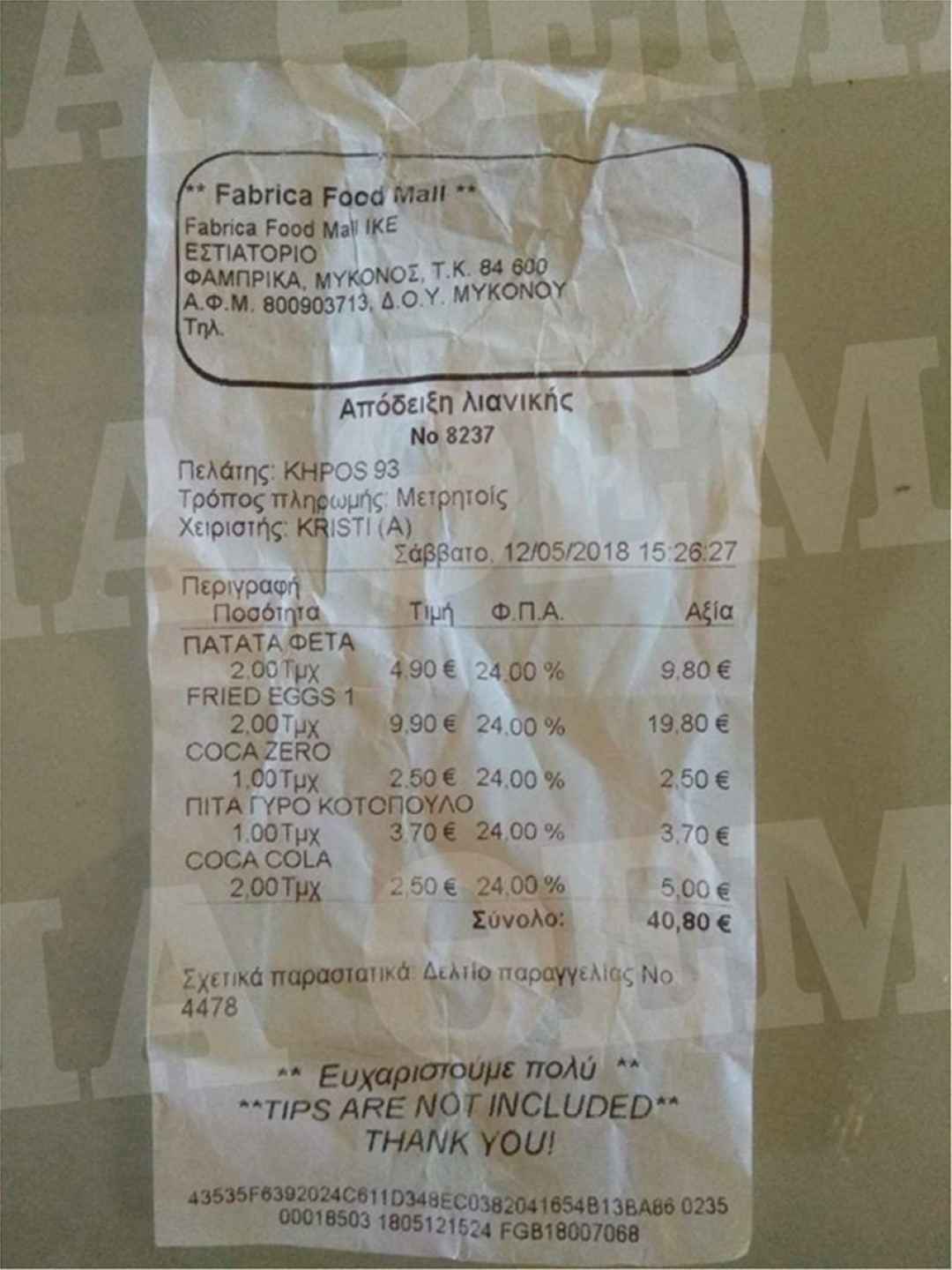 Освен това на свободния пазар живеем в системата на икономиката, където цените на стоките и услугите се определят свободно чрез консенсус между доставчици и потребители и никой не може да се намеси, нито самото правителство. Накратко, посетителите на скромната кръчмица е трябвало да платят 9.90 евро за пържено яйце, т.е. 19.80 евро за две пържени яйца, които са придружени от две филии препечен хляб. Общата сметка за две пържени яйца, една порция картофи със сирене, пилешко гиро и две напитки е точно 40.80 евро.