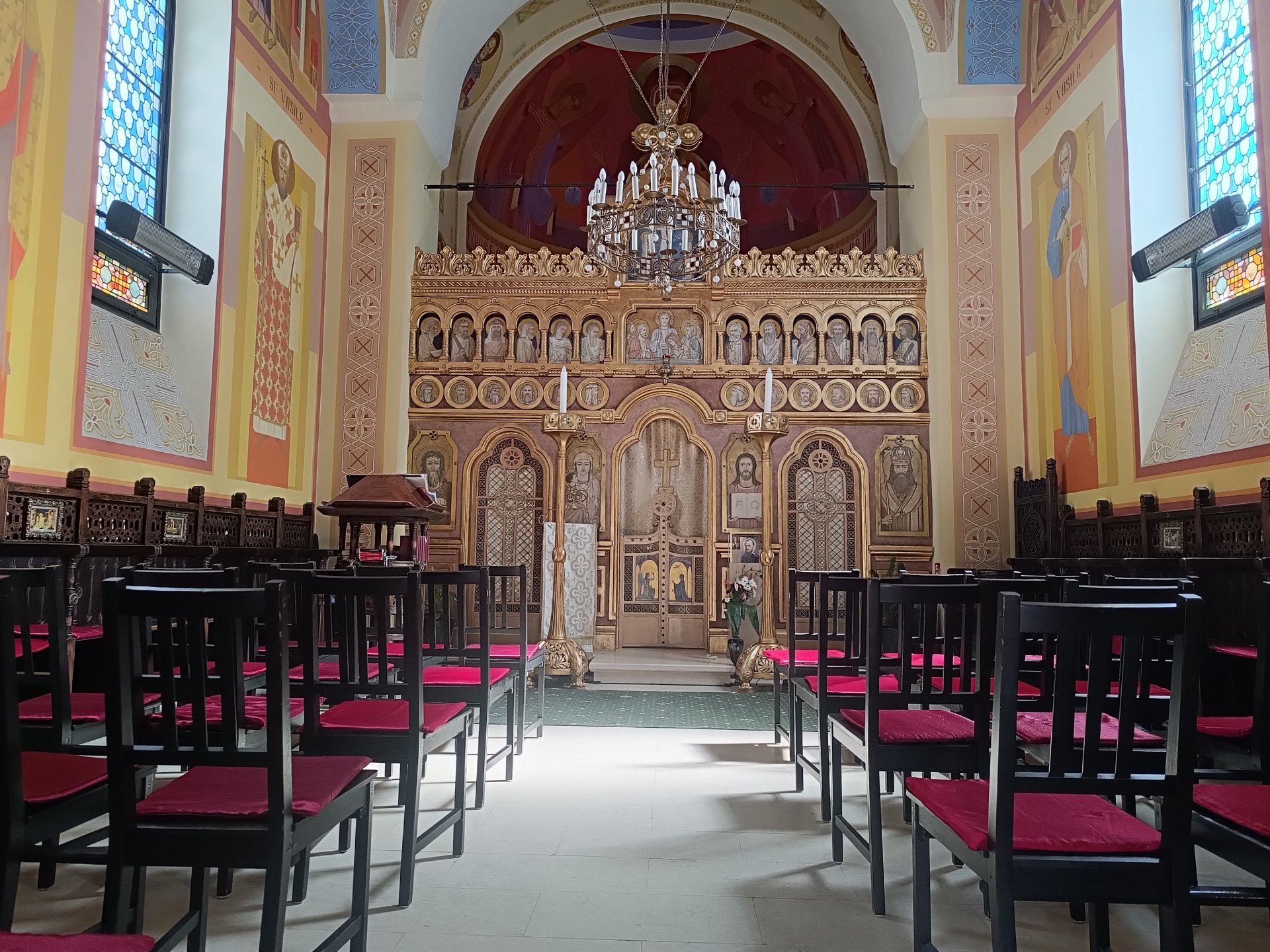 И макар че земетресения и бомбардировки са унищожили много от оригиналните вътрешни декорации, иконостасът е непокътнат, а стените са реставрирани.