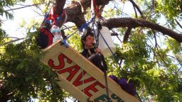 Запознава се с група младежи на северното крайбрежие на Калифорния, протестиращи срещу изсичането на секвоите от Pacific Lumber, от които научава, че са останали само 3% от древната екосистема на секвоите.