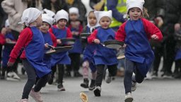 Жени с карирани престилки, кърпи на главата и обути в маратонки участваха в многовековно английско състезание с палачинки. То се проведе във вторник в английския провинциален град Олни, предаде Асошиейтед прес.