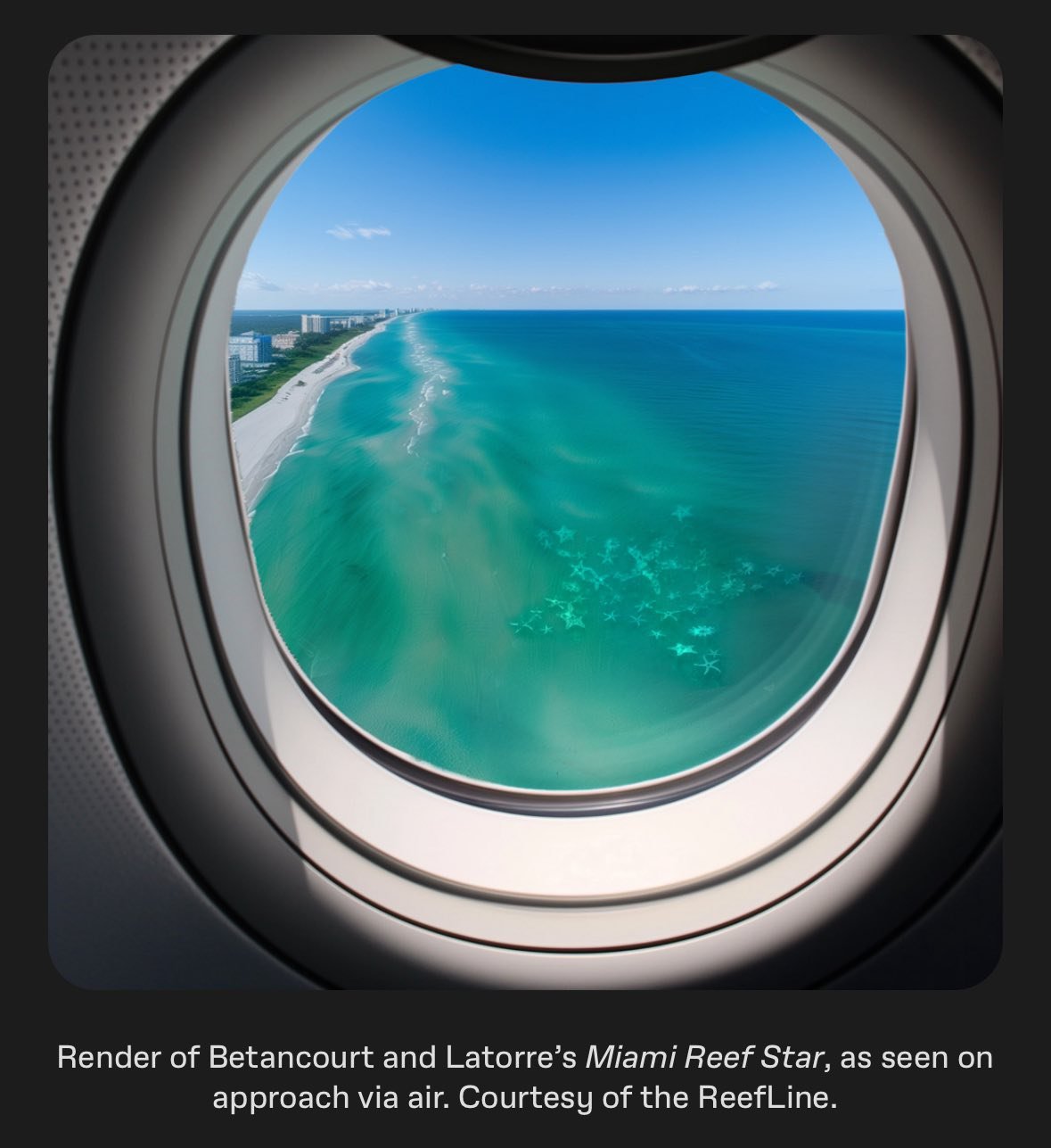 Каминос е замислила цялостния план с архитекта Шохей Шигемацу, а художникът Леандро Ерлих е проектирал скулптурите на автомобили за първия етап. Колин Форд, който ръководи кораловата лаборатория на REEFLINE в Маями, посочи, че скоро се очаква върху скулптурите на автомобилите да се появи гора от меки корали, която ще служи като местообитание за морските животни.