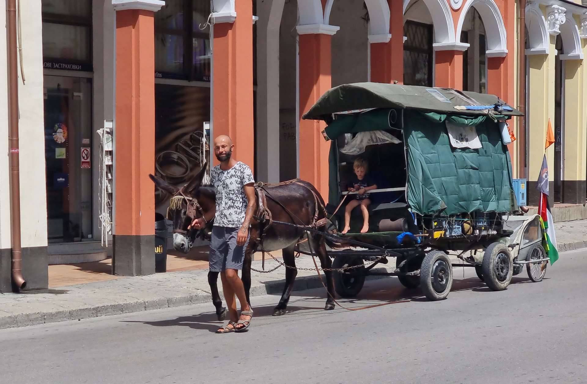 С каруца, теглена от магарето Нина, семейство с четири деца пътува от Франция за Палестина. Пътешествието им започнало преди две години, а днес ги доведе в Ловеч, пише БТА.