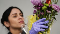 На летището специалистите по селско стопанство от митническите и гранични служби проверяват връзките с цветя, за да предотвратят влизането в страната на потенциално опасни растения, вредители и болести по животните.