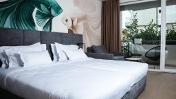 Всички стаи са обогатени с уникални дизайнерски решения, включващи рисувани стени, вдъхновени от морска тематика. Това добавя допълнително усещане за уникалност и персонализация на всяко пространство в хотела, правейки престоя на всеки гост наистина неповторим.
