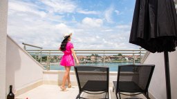 Хотелът разполага с 49 двойни стаи, 6 студиа, 2 ексклузивни мезонета, 9 изключителни апартамента и един ВИП апартамент, които предлагат всичко необходимо за пълноценна морска почивка. Елегантното фоайе, спокойната атмосфера в лоби бара е идеалната среда за продължителни и приятни беседи, съпроводени с избор от изискани напитки.