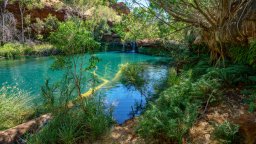 Водопадите и оазисите, които се намират тук, предизвикват още по-голямо възхищение, като се имат предвид условията на суровата външна среда на Пилбара. Приличащ на древна тайна цистерна, спа басейнът е издълбан от скалата от постоянния поток вода в началото на дефилето Хамерсли. Подобното на вана образувание е почти изцяло обгърнато от многоцветна, гладка скална стена. Нежното бълбукане на потока, който постоянно допълва басейна, е единственият звук в едно от най-интимните скривалища на Карджини.
