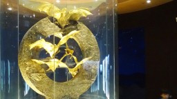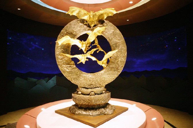 Статуята е инсталирана в специално изградена изложбена зала, наподобяваща пещера - естественото местообитание на прилепите. До статуята е поставено златно яйце с размерите на масичка за кафе, изработено с остатъците от злато и сребро, в чест на митичните герои на Корея, родени от яйца.