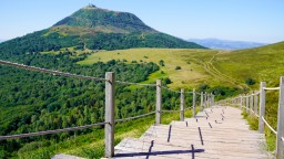 Пюи дьо Дом е най-високата точка в Пюи - верига от повече от 80 вулкана в Централна Франция. На височина 1465 м от нея се открива панорамна гледка към останалите вулкани. Пътеката Sentier des Muletiers в северната част на планината е популярна сред туристите. Изминава се за около час. Ако желаете по-лесно изкачване, можете да се качите на влака Panoramique des Dômes. На върха ще откриете древния храм на Меркурий, римско светилище от III век.