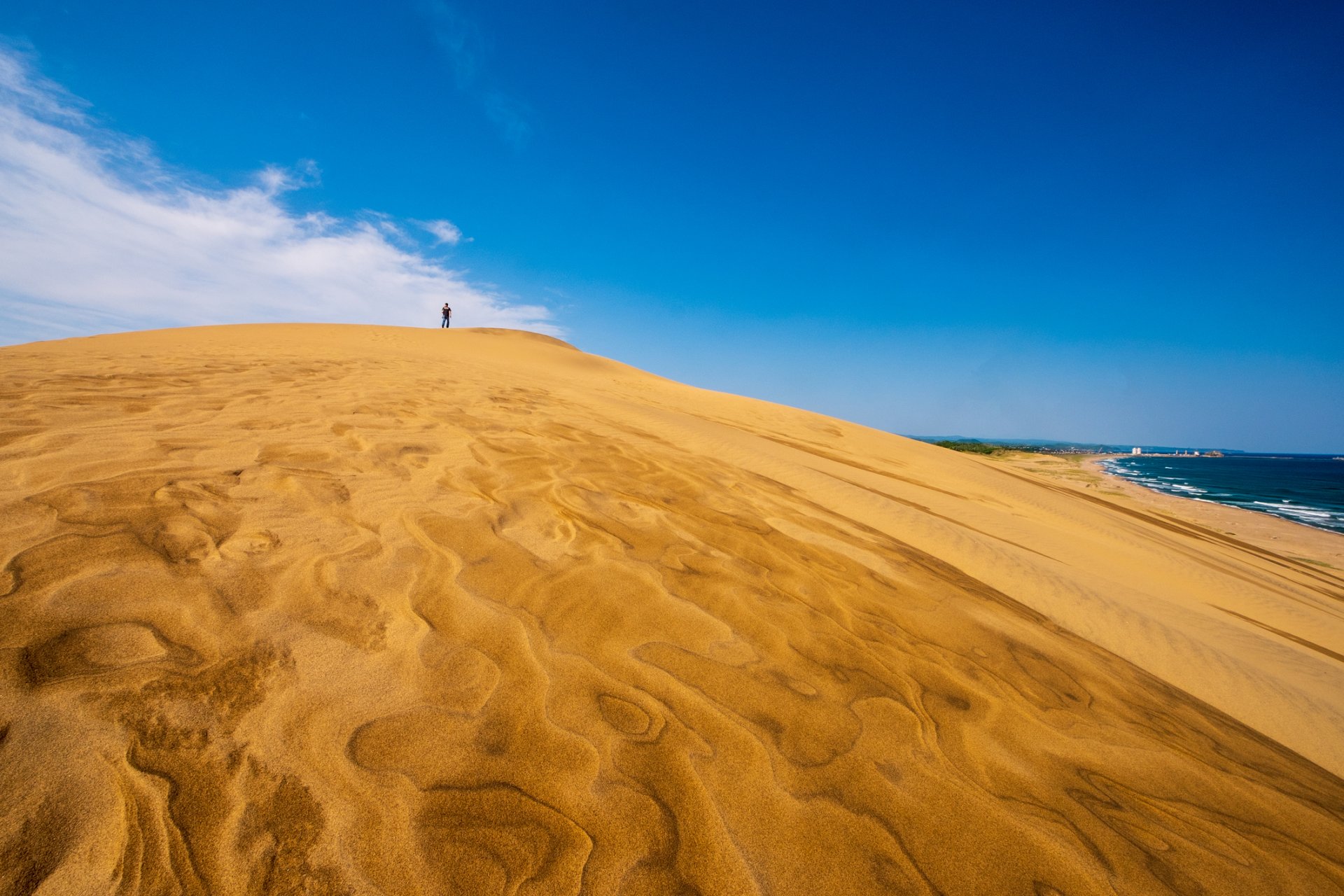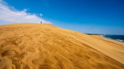 Дюни от златни песъчинки се издигат към парещото слънце. От основата на най-високата дюна на пустинята яркосиньото небе наднича отвъд необятната шир. Ще ви бъде простено, ако си помислите, че сте попаднали в Близкия изток. Но това са пясъчните дюни Тотори, разположени по крайбрежието на рядко населената японска област Сан'ин, собственото парче пустиня на Япония, пише CNN.