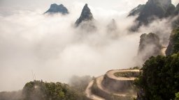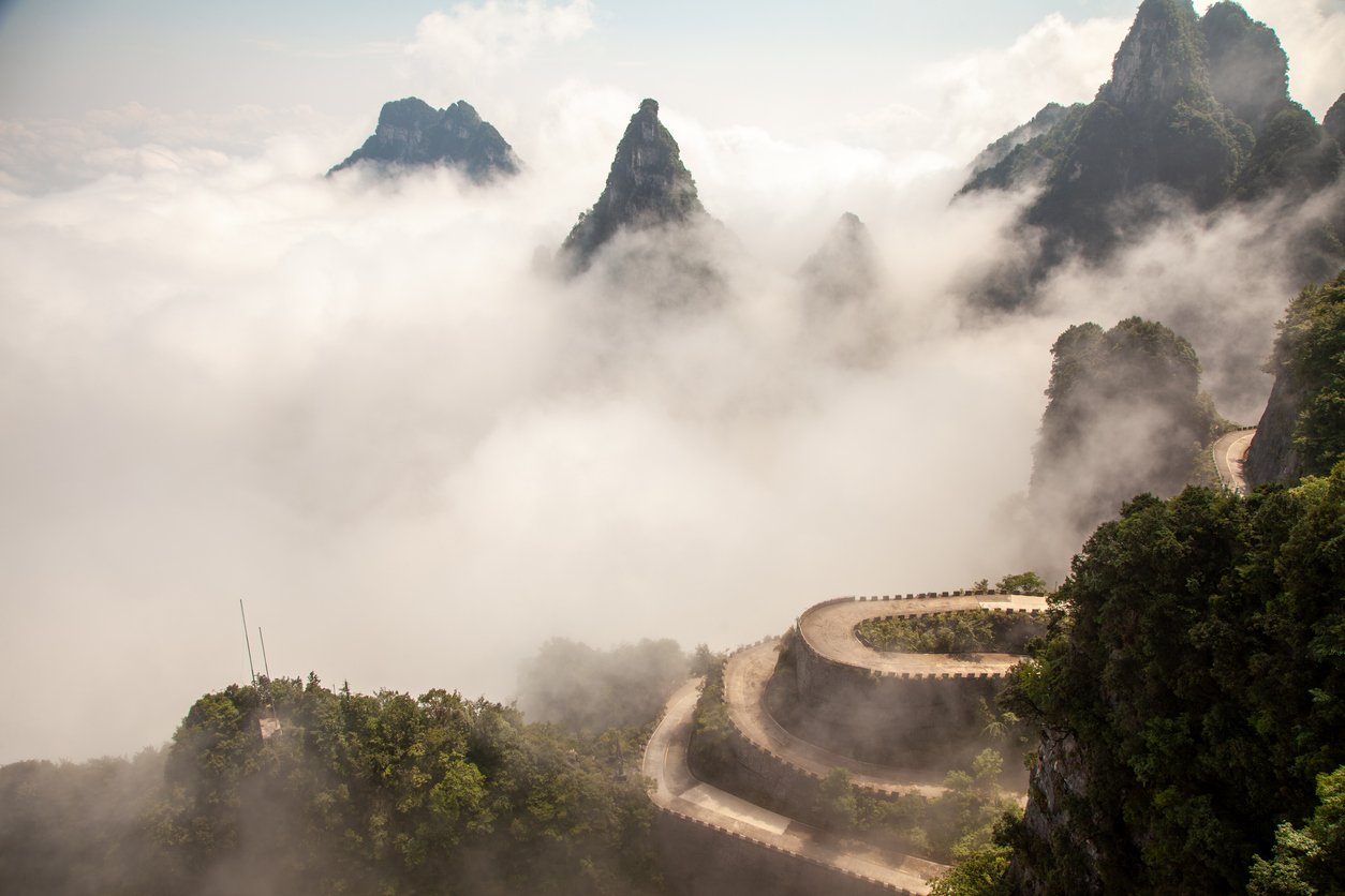 В сърцето на провинция Хунан в Китай, един планински път се извива нагоре в толкова впечатляваща плетеница от завои, че прилича на лента, сякаш преметната през тъмнозелените склонове. Това е Тонгтян, често наричан Пътят към небето/рая или Пътят към Голямата порта на планината Тианмен.