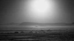 Това е Черната пустиня на Йордания, известна още като Harrat al-Sham, граница в повече от един смисъл. Суровият ландшафт разказва историята на минали и настоящи цивилизации, които са се опитвали да го укротят - римски руини, полузавършени бетонни конструкции, съвременни военни бази, бежански лагери, и една магистрала.