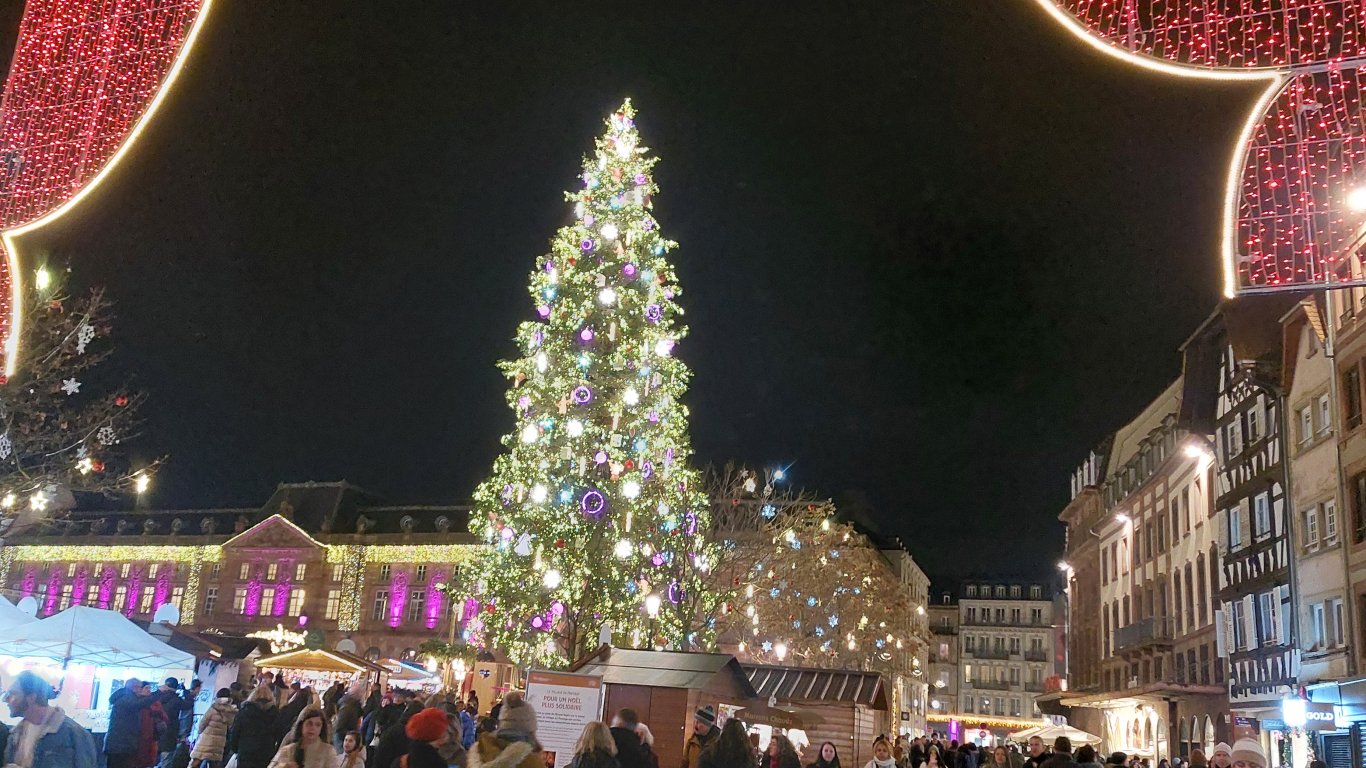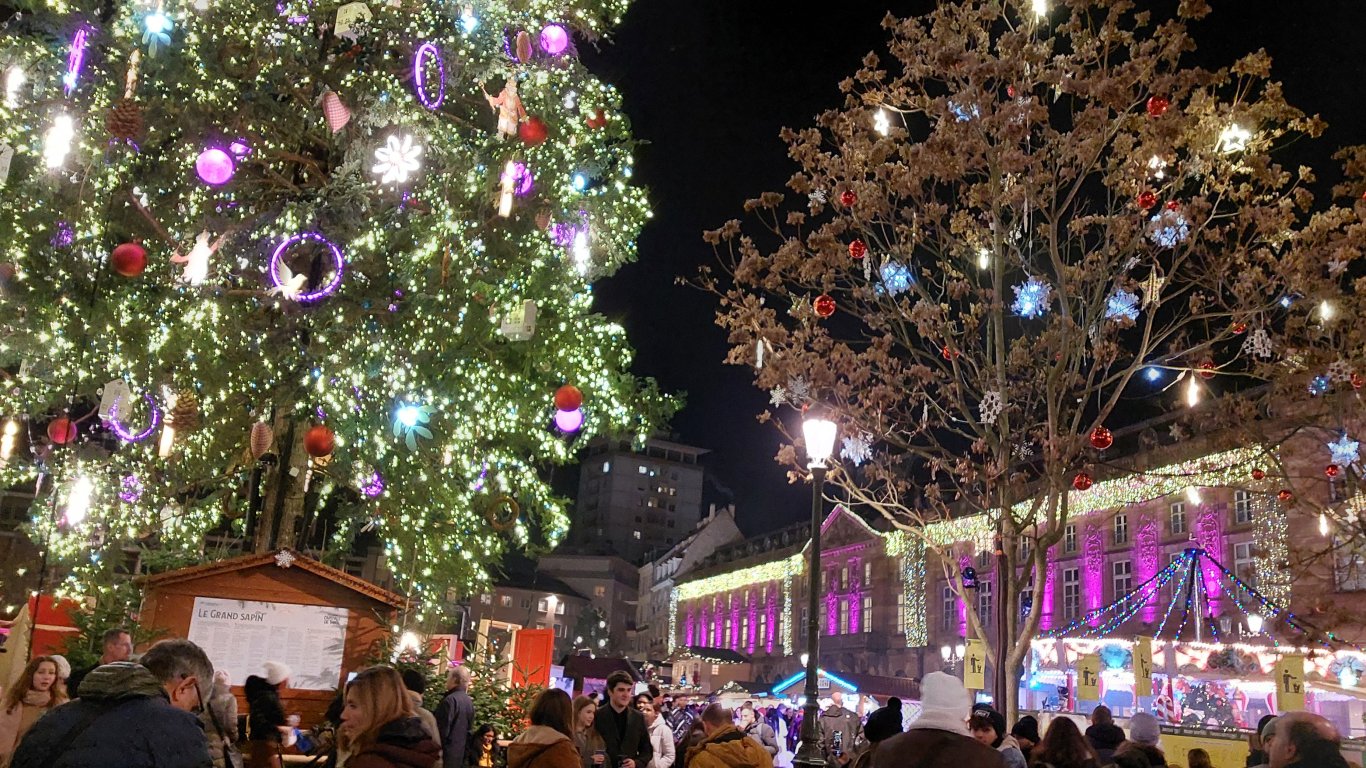 Погледът потъва в море от светлини и цветове, фасади, накичени с коледни топки, плюшени играчки и гирлянди от лампички. Затова в Страсбург Коледа се чувства на мястото си, а тълпите туристи не секват.