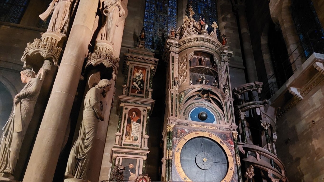 Часовникарският и астрономически шедьовър е създаден през 16-и век, а голяма тълпа туристи се строява още във вестибюла, за да заснеме фигурките, които започват да се движат, когато удари точният час.