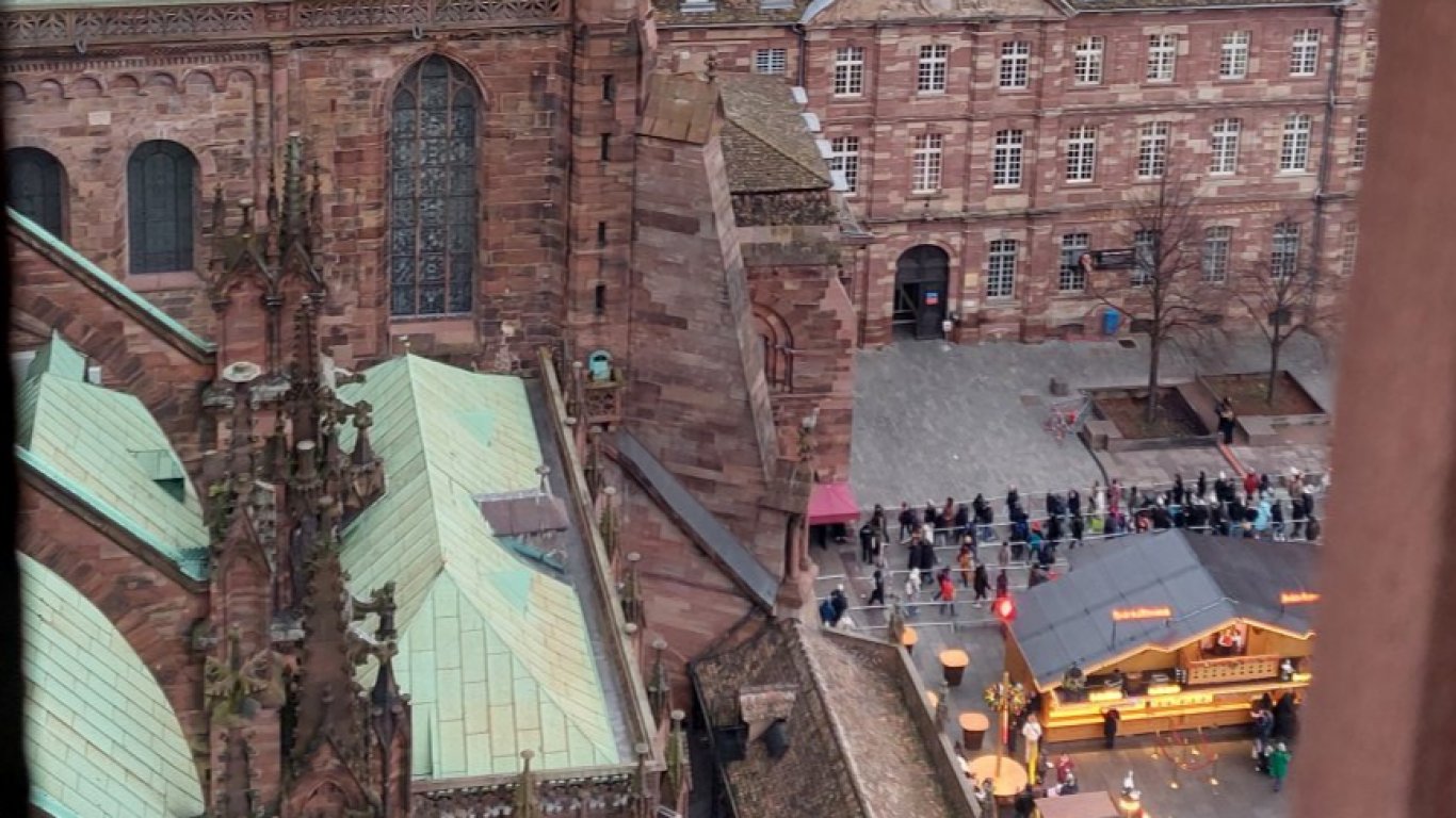 Засилените мерки за сигурност са обеца на ухото след атентата на 12 декември преди седем години, извършен точно тук, недалеч от катедралата, когато ислямист откри стрелба по посетителите на коледния базар до "Нотр Дам дьо Страсбург".