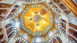 Катедралата впечатлява с уникалната комбинация от романски и неоготически стилове. Кулата в неоготически стил е добавена след падането на Наполеон, а вътрешността предлага блестящи мозайки, изящни стъклописи и трона на Карл Велики. В съкровищницата ѝ се съхраняват едни от най-богатите църковни съкровища в Северна Европа. До катедралата е и музеят, посветен на Карл Велики, който проследява развитието на града от римско време до днес.