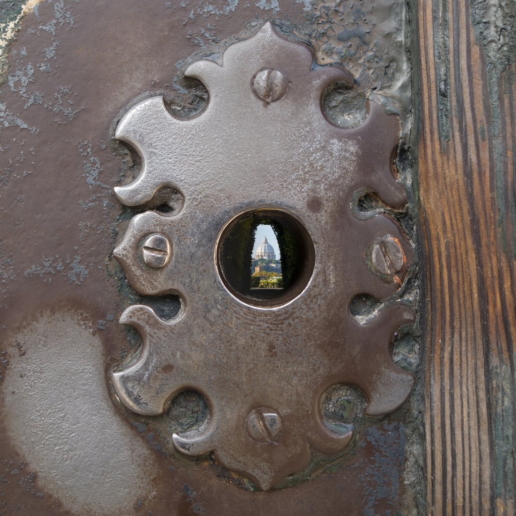 За да я видиш, трябва да се изкачиш до върха на Авентинския хълм и да стигнеш до портите на манастира на Ордена на малтийските рицари. Погледнеш ли през ключалката, пред теб се разкрива зелен двор, а в далечината - куполът на Ватикана, идеално рамкиран от кипарисите. Магията идва от усещането за тайно надзърване, за нещо леко забранено. Само че днес тишината често се нарушава от дълга опашка и нетърпеливи туристи, които чакат своя ред.
